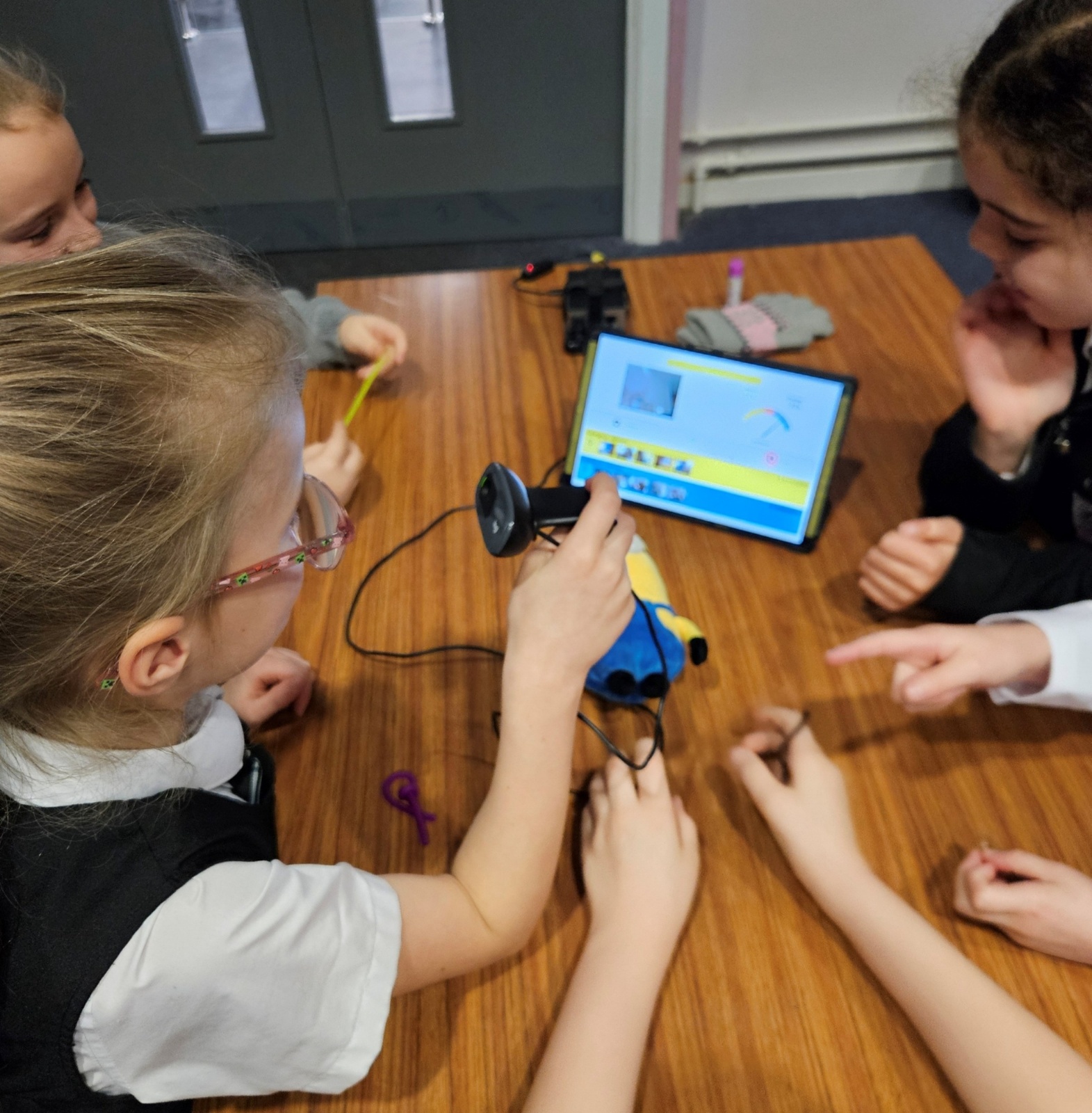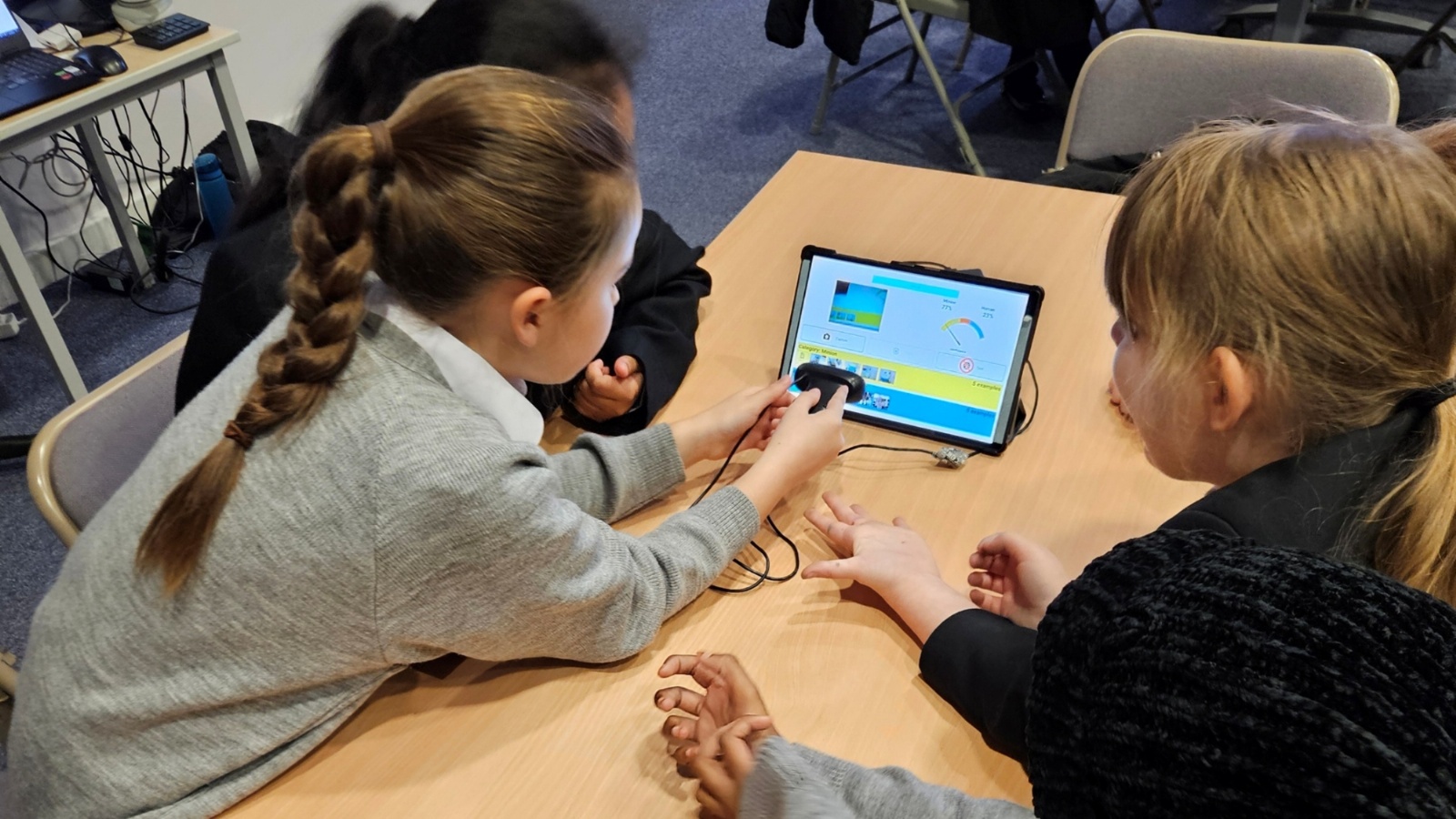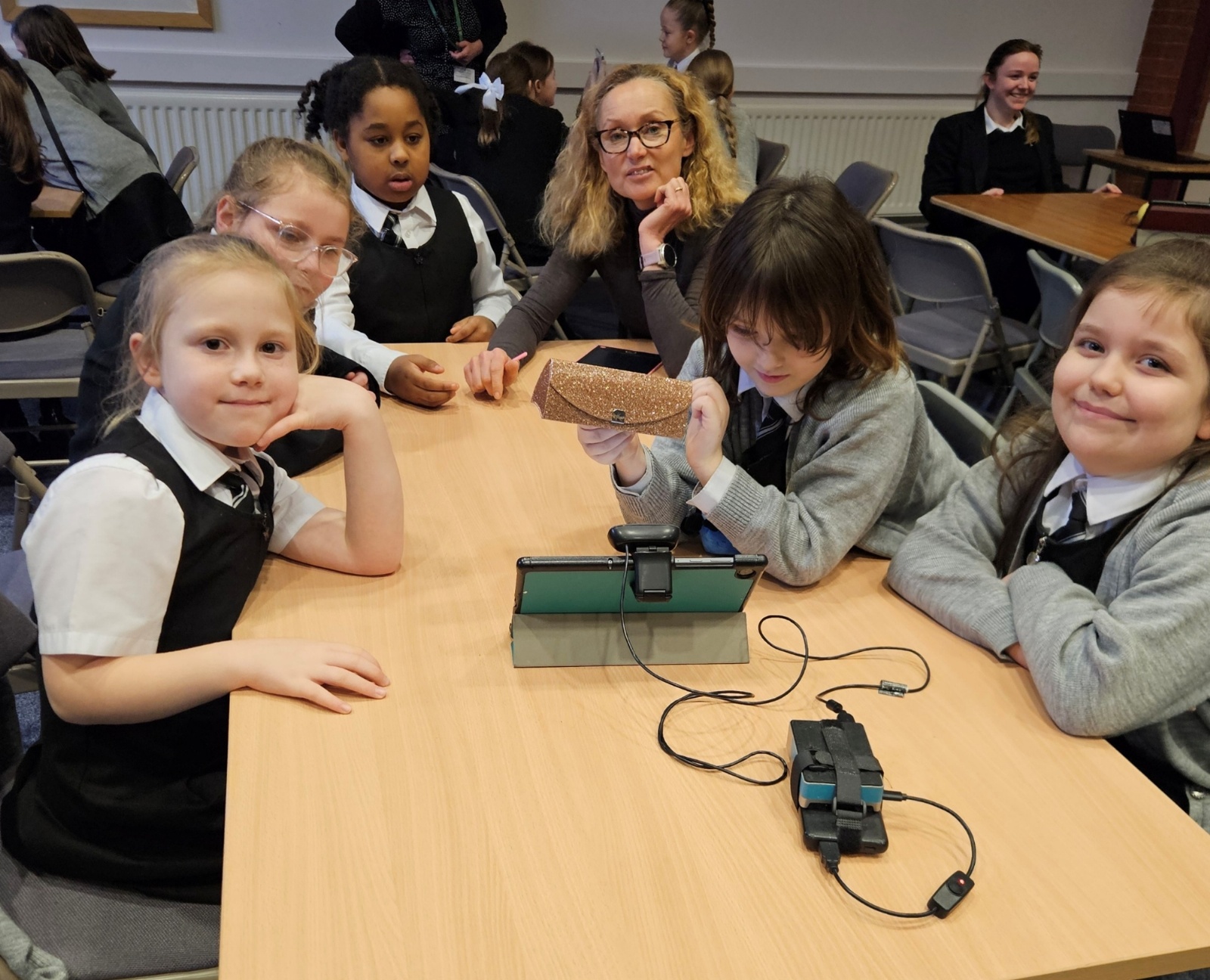 Nick brought along fantastic equipment for each group to use, including tablets, Raspberry Pi computers, and webcams as part of the practical workshops. First they explored the concept of machine learning by training an AI system to recognise the difference between a human and a Minion! They also experimented with object detection and facial mapping/ recognition techniques. Along with machine learning, the students delved into the world of generative AI where they created video and image content and listened to a comparison of AI-generated versus human-created music.